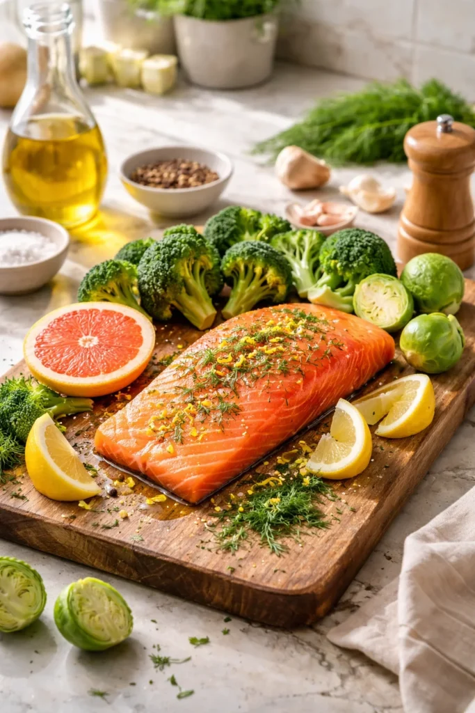 - Salmon with lemon dill yogurt: Roast salmon, top with yogurt, lemon zest, dill, and a pinch of salt.
